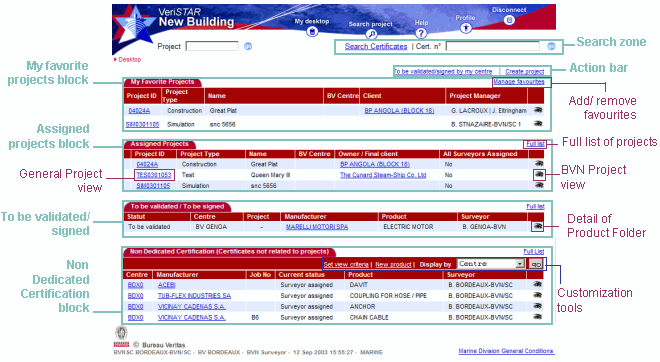 When connecting to VeriSTAR New Building, the Desktop is the first page you visit. It is very important to understand the structure and use of this page, to start a relevant navigation and work.